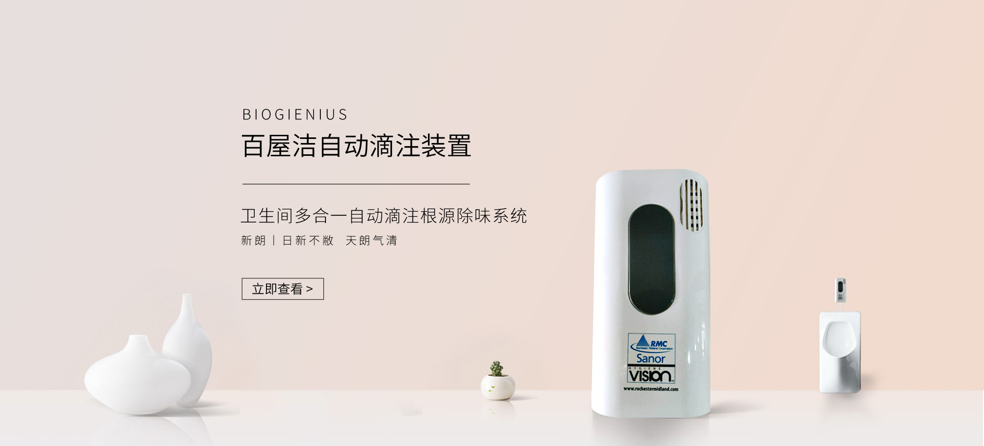 新朗環(huán)境自2015年起與美國具百年歷史的跨國企業(yè)RMC(Rochester Midland Corporation)合作, 進口 RMC用于機械制造、交通運輸、航天航空、石油化工、食品禽肉乳制品加工等工業(yè)生產(chǎn)制造行業(yè)的專業(yè)清洗、滅菌系列產(chǎn)品,以及酒店、CBD大廈、學(xué)校(包括幼稚園)、醫(yī)療機構(gòu)、百貨商場、養(yǎng)殖業(yè)、餐飲業(yè)等商用行業(yè)清潔、消毒系列產(chǎn)品,還有專用于各個行業(yè)單位“廁所革命”的公共衛(wèi)生間根源除味第5代SANOR?衛(wèi)生間自動滴管系統(tǒng)、第6代百屋潔SIOGIENIUS?電子控制衛(wèi)生間自動滴注系統(tǒng)等系列產(chǎn)品項目。